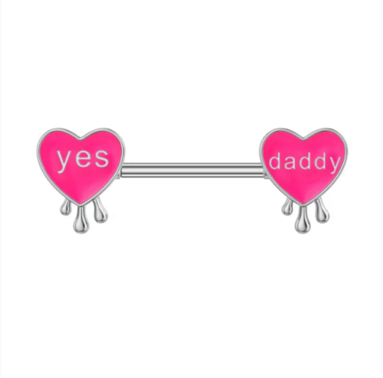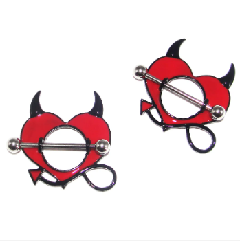 Unleash your playful side with these Little Devil Heart Nipple Shields. Featuring a vibrant red enamel heart accented with mischievous black horns and a tail, these rings are the perfect blend of gothic charm and punk edge.