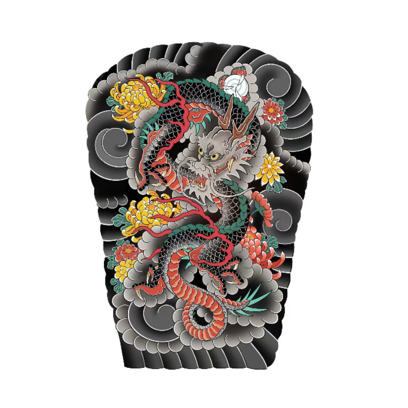 【A4】Flower-patterned tattoo stickers, waterproof, durable, long-lasting (3-5 days), suitable for men and women. Realistic design featuring dragons, peonies, and Japanese motifs.