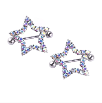 14G Internally Threaded F136 Titanium Straight Barbell Sparkling Star Nipple Shield Barbell – Iridescent Rhinestone Piercing Jewelry