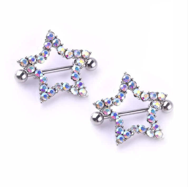 Add a celestial glow to your collection with this stunning Star Nipple Shield. Adorned with shimmering iridescent rhinestones that catch the light from every angle, this five-point star design offers a dreamlike “bling” effect. Perfect for those who want to combine bold style with a touch of cosmic magic, this piece is designed to stand out and shine.