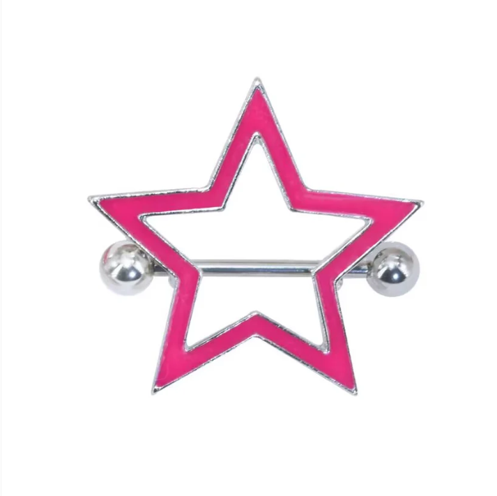 Elevate your body art with these vibrant Star Nipple Shields. Featuring a bold, hollow-out pentagram design with a glossy enamel finish, these pieces perfectly capture the Y2K aesthetic and alt-fashion vibe. Whether you’re looking to add a pop of hot pink or classic red to your collection, these shields offer a striking silhouette that frames your piercing beautifully. Ideal for daily wear or making a statement at festivals, they combine edgy punk style with a modern, clean look.