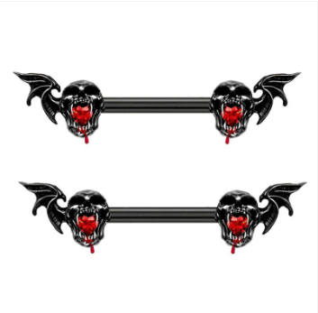 Embrace your dark side with this striking Gothic Bat Skull Nipple Barbell. Featuring an intricate black bat-wing design paired with piercing red gemstone eyes, this piece is the ultimate statement for lovers of vampire aesthetics and punk-rock fashion.