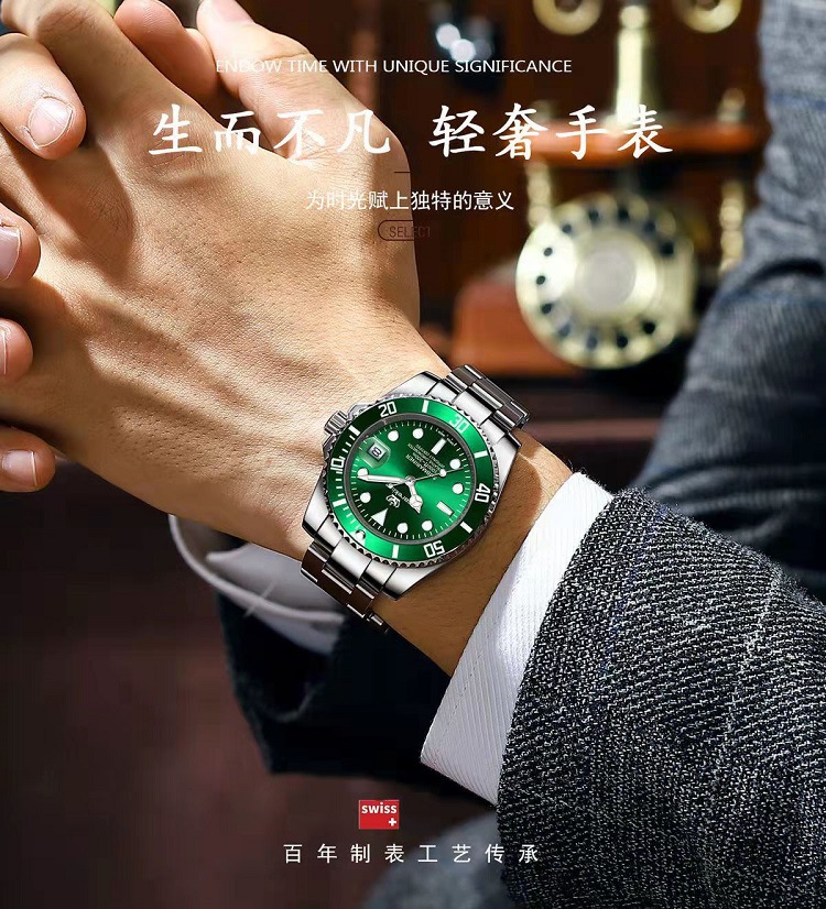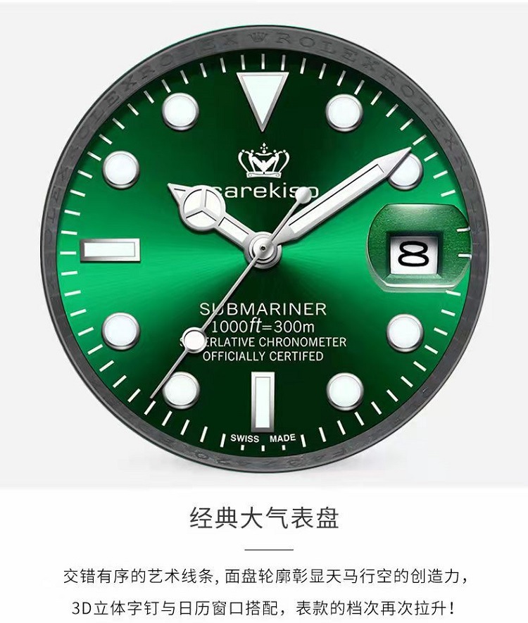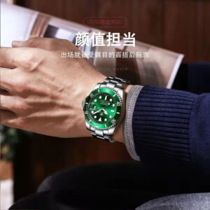 Green Ghost Men’s Watch with Calendar,绿鬼男士手表日历夜光防水男士专属